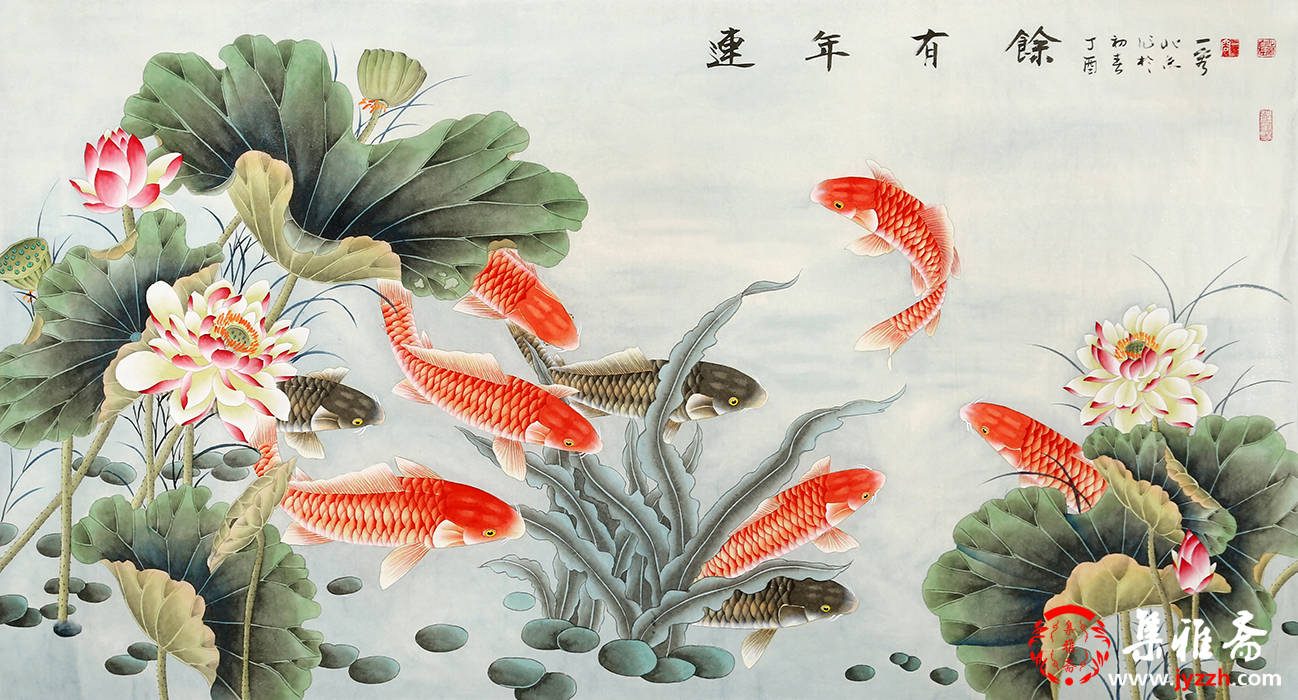 适合作为礼物的字画名家推荐三:王一容荷花鲤鱼图《连年有余》