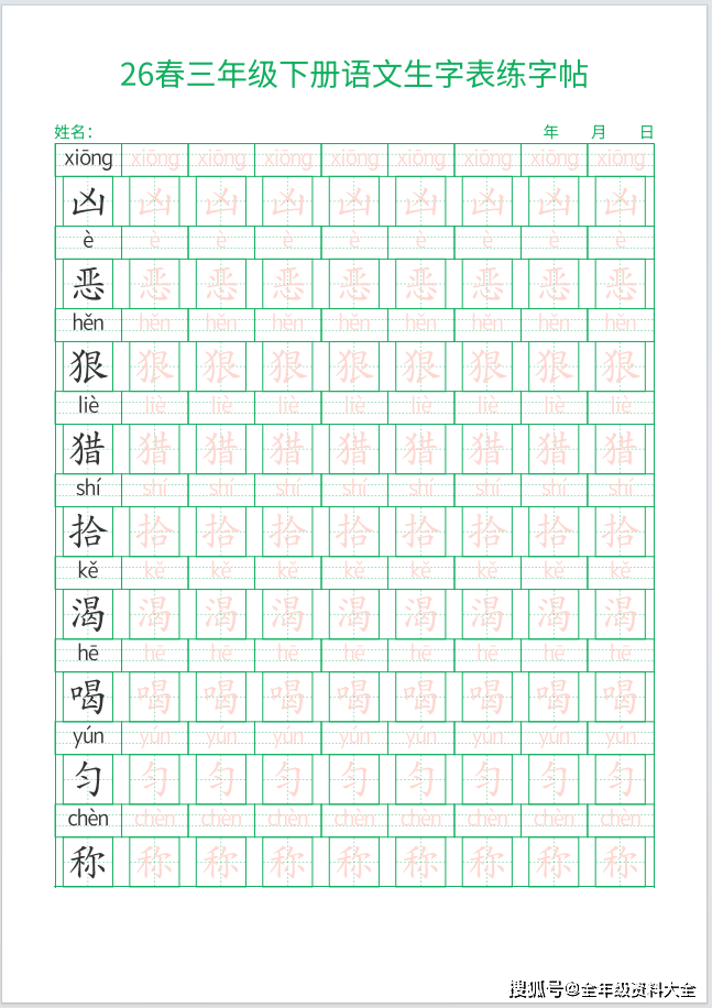 三年级下册是语文书写从 “规范” 到 “工整美观” 的进阶关键期,人教版教材生字笔画更繁杂、结构更多变,形近字、多部件组合字占比提升,对间架结构、书写章法的要求更高,更是培养卷面意识、为高年级书面表达打基础的黄金阶段!2026 春人教版小学三年级下册语文《生字表描红字帖》重磅上线,严格同步教材生字表,从描红到临写层层进阶,让孩子在规范描红中吃透生字写法,练出工整匀称好字,夯实三年级书写进阶根基!