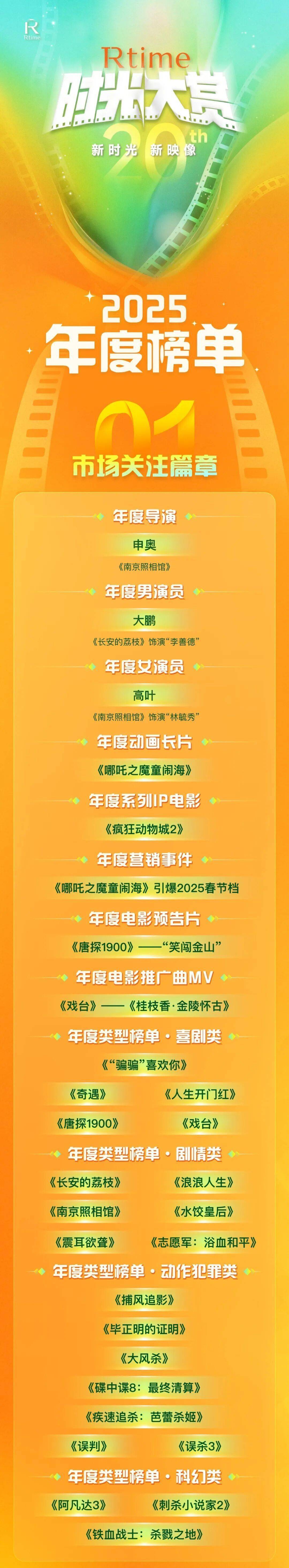 在行业面临原创乏力、类型固化的当下,Rtime时光大赏年度榜单的创新具有示范意义。它证明电影评奖可以不必陷入“流量与口碑”的二元对立,而是通过专业的分类设计、从观众视角出发的标准设定,让商业片的工业价值、艺术片的思想深度、新人的创新活力都能得到公正评价。