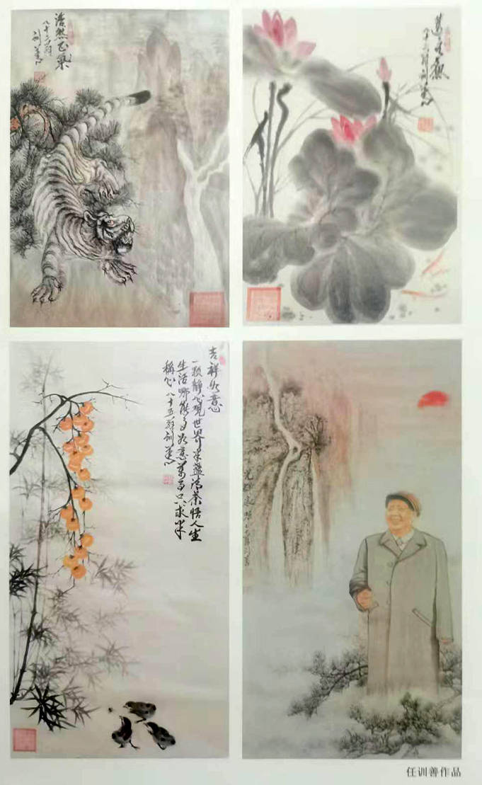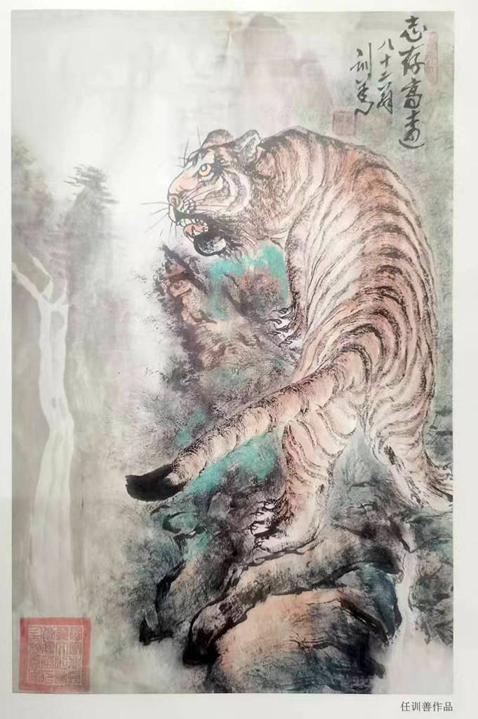 任训善,字沧海,号虎云轩主人,1942 年生于中国书画艺术之乡安徽省萧县闫集镇塘沃涯村职业画家,自幼酷爱书画,立志:寒日百年不求功名一时,苦练终生追求艺术千秋。少年开始素描写生,画像谋生,足迹踏遍祖国的名山大川。从事美术研究 60 余载,师法自然效法古今,其技,其法渐臻登极,为今日之成就奠定了坚实基础。任先生画虎以工写结合的技法画虎意,借苍劲灵动的笔法写虎纹用中西结合的墨法显虎魂,创作彩色百虎图 28.8 米及水墨虎 38 米长卷。气势恢宏,虎姿百态,大自然美与虎灵性形成和谐地统一将欣赏者带到天人合一,水墨交融至高无上的艺术境界。水墨群虾图,造型生动,形神兼备,用墨热情奔放,用笔游刃有余,笔墨灵动,神彩飞扬,一种鲜活蓬勃的生命张力和热爱生活节奏律动。笔下的山水以山川景观为主,取众家笔墨技法和丰富地民族底蕴给人一种视觉上的冲击与积极向上信念。从威猛豪放的百虎图到晶莹剔透的群虾图再看古意幽远山水画画,其姿态其神韵,无不透露出严肃典雅超凡脱俗的画风。任先生突出的艺术成就影响了中国感动世界,得到越来越多来至收藏和业界一致认可及好评,荣获:中国德艺双馨艺术家,中国艺术大师,感动中国杰出文化传承人,世界艺术大师和平艺术家,艺术传承最高成就奖,世界艺术最高成就奖,国际金猴终身成就奖,影响中国感动世界年度人物,海峡两岸文化交流大使,中英艺术交流形象大使,十大军民艺术家,十大国宝艺术家等奖杯、奖牌、勋章和证书。