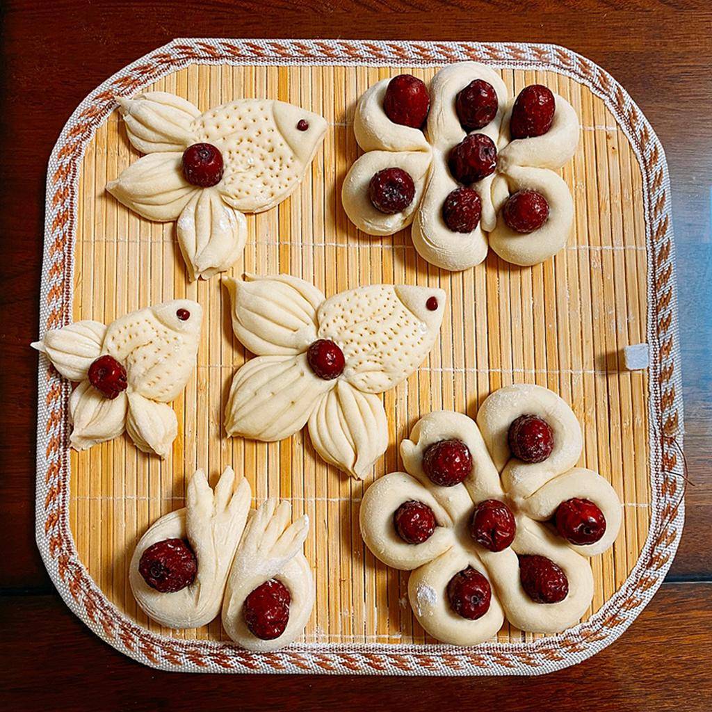春节蒸“枣山馍”,红枣嵌进面团堆成小山,寓意日子红红火火;端午做“粽子馍”“五毒馍”,祈求平安避邪;中秋蒸“月亮馍”,应和团圆之意。