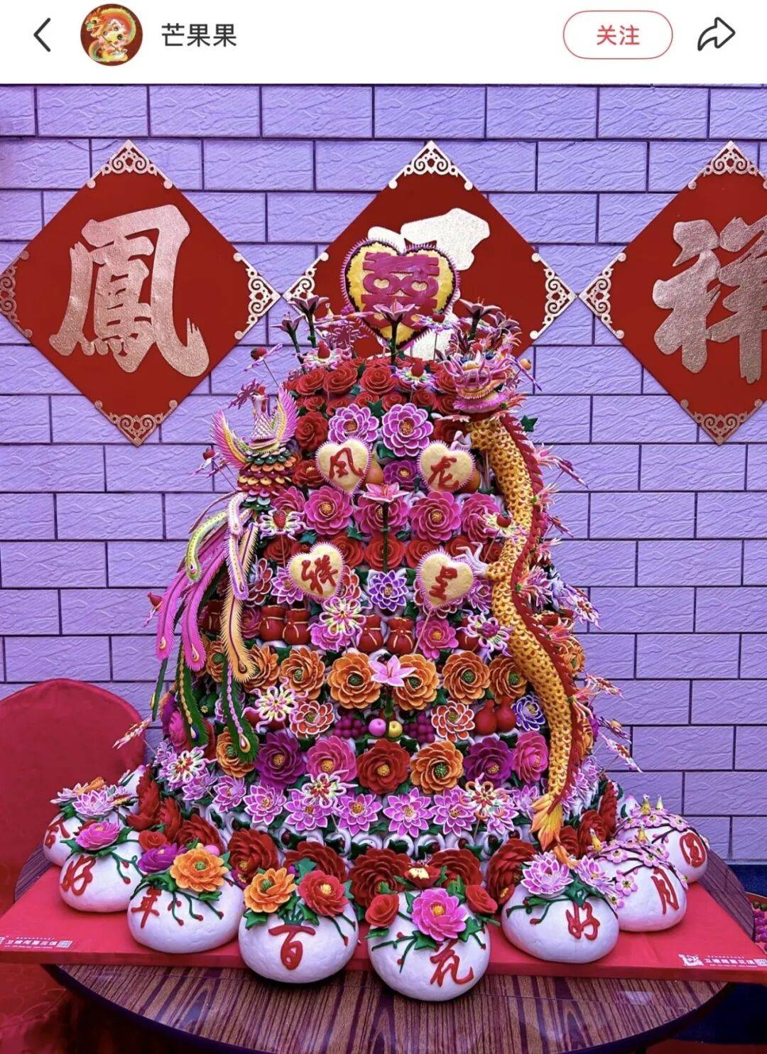 视频里那株层层叠叠、繁花簇拥的“花树”,还有栩栩如生的龙凤、饱满圆润的寿桃,居然全是用面粉捏出来的闻喜花馍!