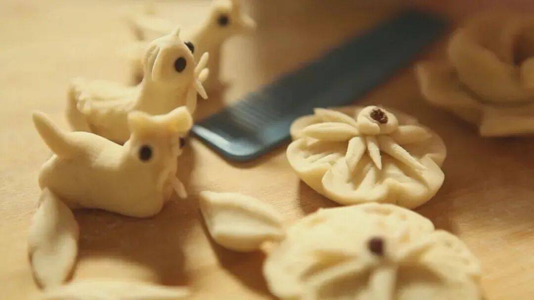 不用图纸不用模板,全凭艺人的指尖功夫,一把剪刀、一根竹签,就能把面团捏成花鸟瑞兽、人物景致,连花瓣的纹路、兽羽的层次都清晰灵动。
