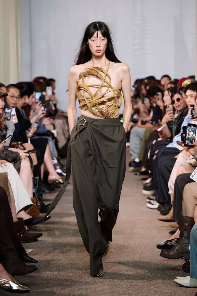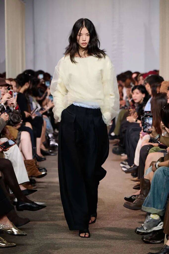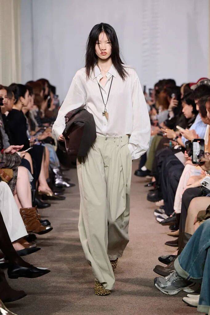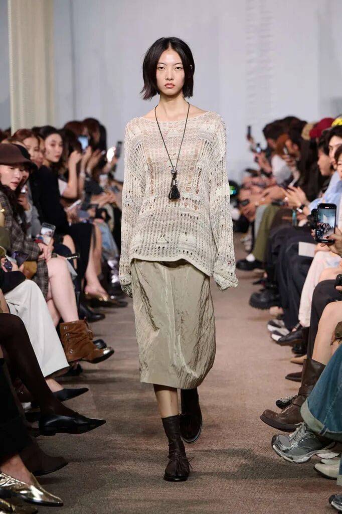 "本季最令人印象深刻的是材质实验:竹基面料首次亮相,完美诠释了'韧性'概念;轻量再生纤维与挺括亚麻的结合,在柔韧与筋骨间找到理想平衡;而多纱线针织实验则创造出既有力量又有柔软感的独特质感。"