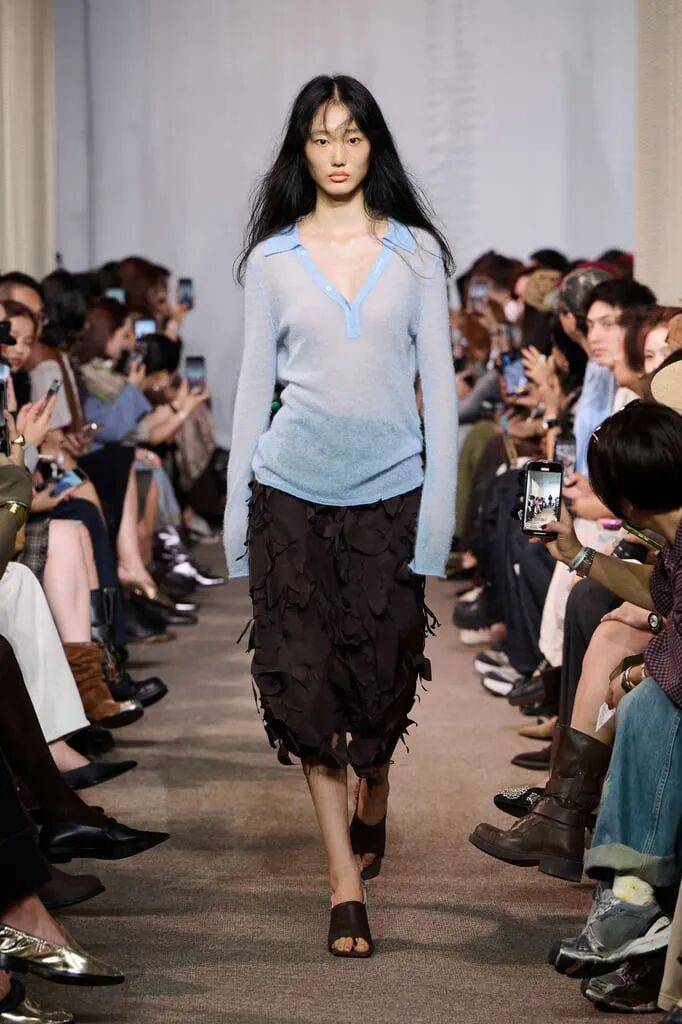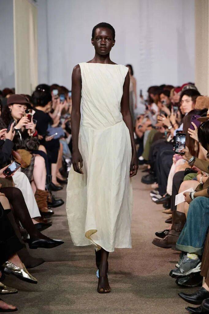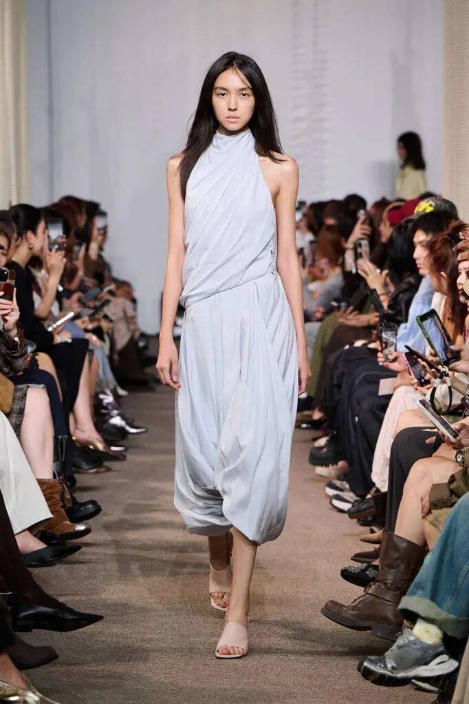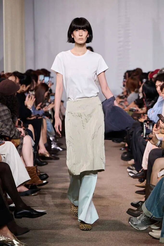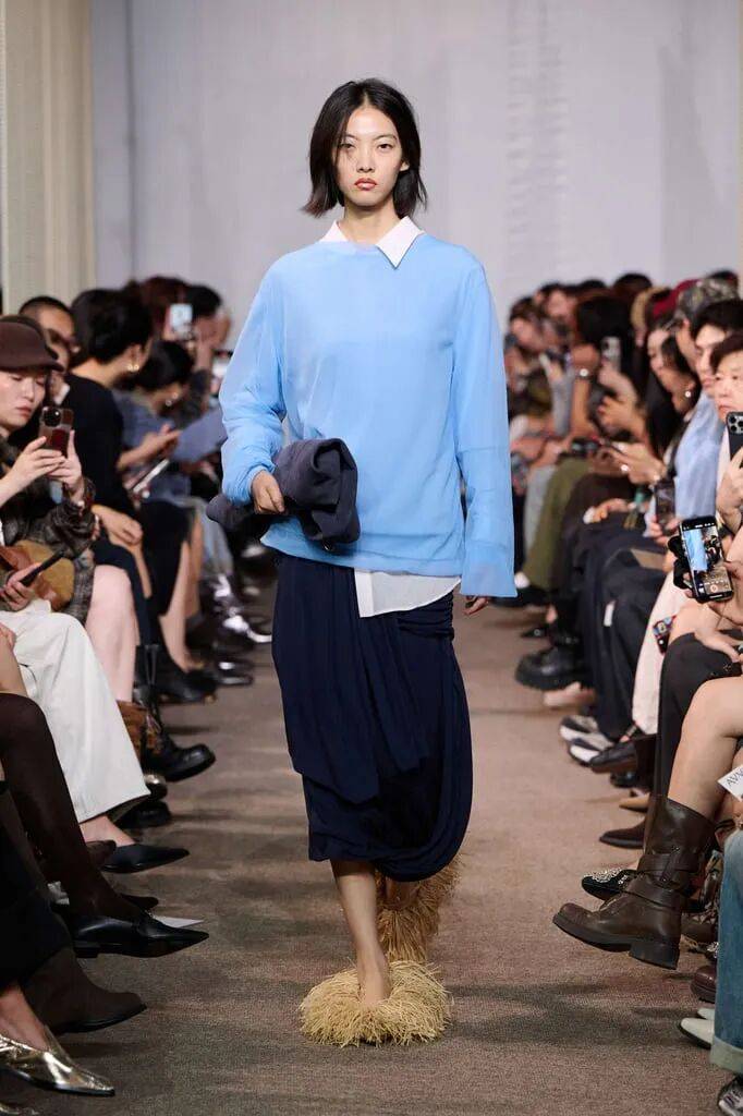 "本季最令人印象深刻的是材质实验:竹基面料首次亮相,完美诠释了'韧性'概念;轻量再生纤维与挺括亚麻的结合,在柔韧与筋骨间找到理想平衡;而多纱线针织实验则创造出既有力量又有柔软感的独特质感。"