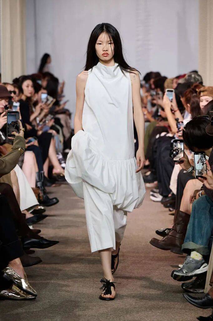 浅色系的颜色在清透的清新气质中,简约纯色还在廓形线条上,以褶皱等元素的装饰也多了一些细节的随性时尚。