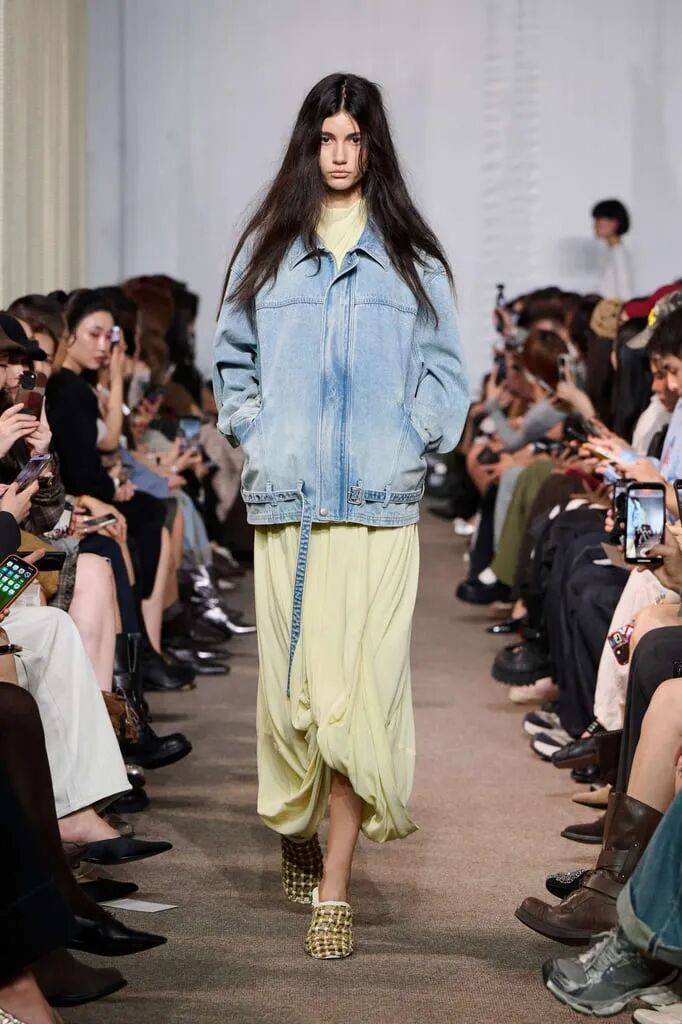 浅色系嫩黄色颜色的服装在青春明亮的活力气质中,而蓝色的牛仔夹克外套多了一些日常和混搭的时尚。