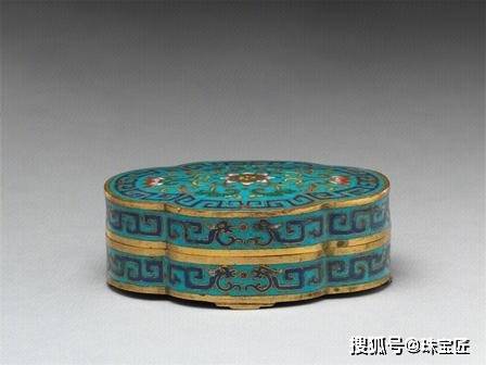 掐丝珐琅莲纹夔龙纹海棠式盒