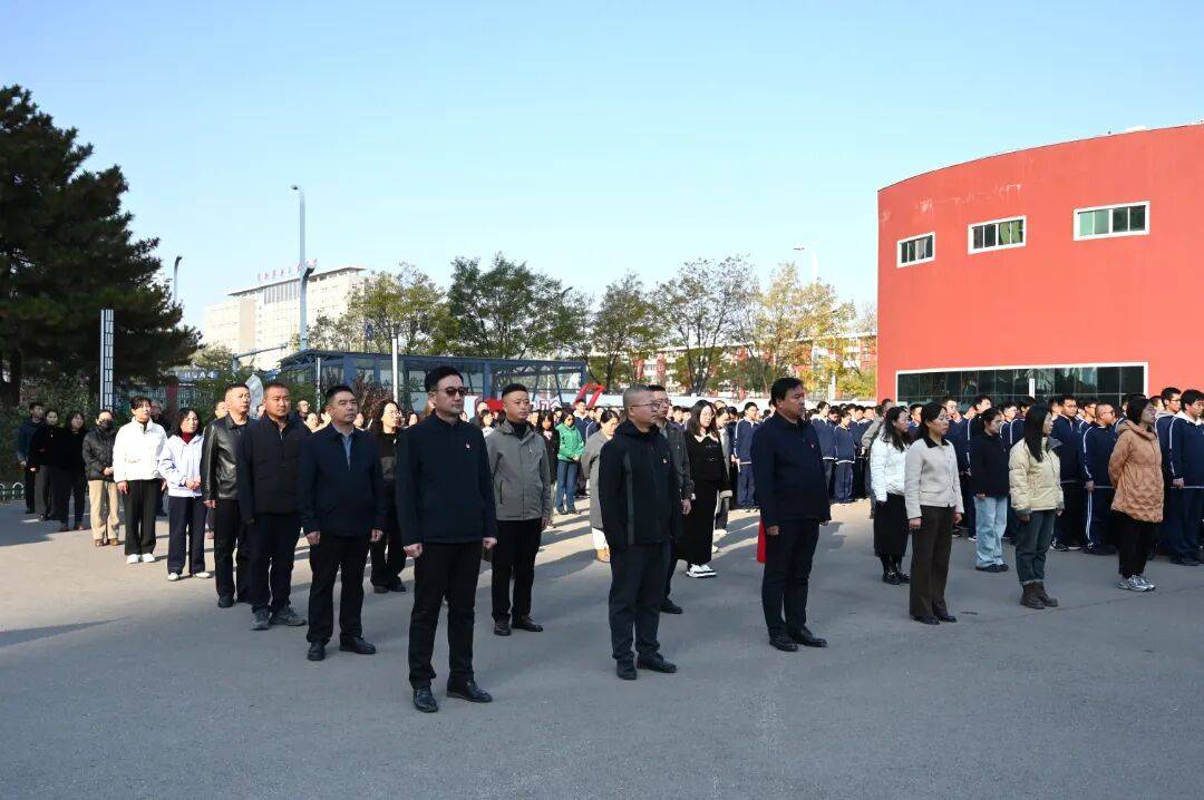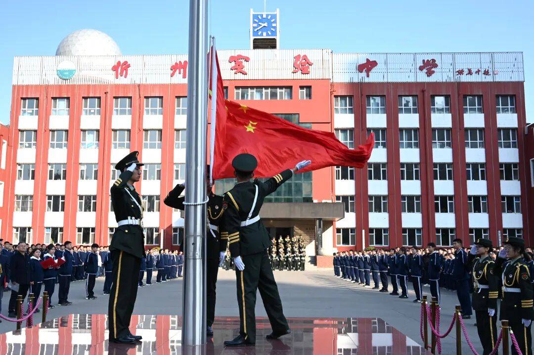 开幕式在庄严的主题升旗仪式中正式拉开帷幕。英姿飒爽的国旗护卫队队员,迈着铿锵坚定的步伐,护卫着五星红旗走向升旗台。全场肃立,在雄壮激昂的《义勇军进行曲》中,全体师生凝视着那一片鲜红迎风展翅,在湛蓝的天幕下冉冉升起。这一刻,不仅是国旗在飘扬,更是一种深沉的家国情怀与崇高的青春理想在共同升腾。 开幕式升旗仪式由高429班组织,师生列队参加。