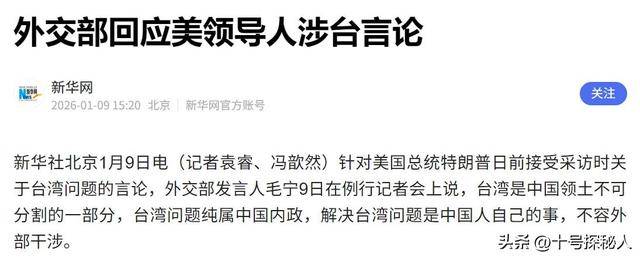 特朗普在接受《纽约时报》采访时对台湾问题发表了一通新的看法,直言台海不是委内瑞拉,那是赔本买卖。他公然喊话:三年内不许动武,否则我就要不高兴!