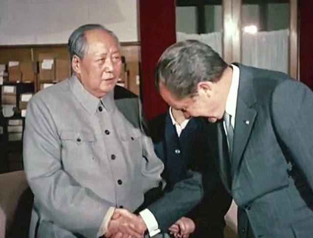 1972年2月21日,尼克松抵达北京。由于中美尚未建立正式的外交关系,中国方面对待美国的接待并没有过多的隆重安排,完全按照惯例行事,这使得尼克松感到稍许尴尬。 由于毛主席的健康问题,接见活动大多是在书房进行。尼克松从钓鱼台国宾馆走了很长一段路,才来到毛主席的书房。看到满书架的书籍,尼克松对毛主席的生活产生了浓厚的兴趣。 此时,媒体记者也赶到了,见证了这一历史性时刻。毛主席在工作人员的帮助下缓缓站起,双方的握手照片就这样留下了。