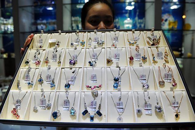 在南方的一个县城里,街头上摆满了通透饱满的宝石首饰,戒指和项链应有尽有。