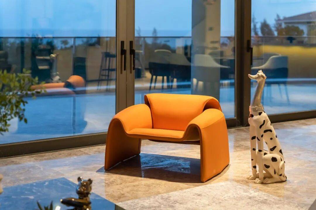 开放式客厅+现代化厨房+吧台+泳池庭院
