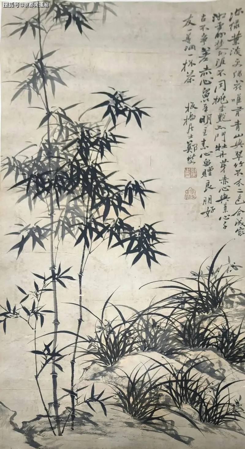 狷介则是郑燮先生的那竹图了,不见稠雨,却有秋气,萧瑟之意,舒叶片片,骨奇狂狷,迎风不折,韧而节节有性,那是对俗风庸世的作为和姿态。他对农民的态度可为佐证,曰:我想天地间第一人等,只有老农,而士为四民之末。他把农民列第一位,无异说是,比较士人为官作凶,不第则在乡野逞能作恶,颇有点儿“泥腿子造反”和“工农兵学商”之序列的毛思想,就是和你不一样,震耳发聩,惊世骇俗;就是和你不一样:“萧瑟秋风今又是,换了人间”的气魄,竟自郑燮时代既有的那架竹桥。