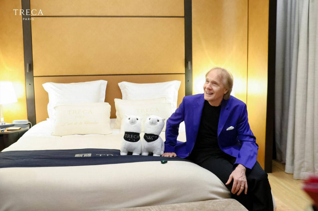 在套房内,法国TRECA崔佧家居北京城市负责人尹爽女士热情地向理查德·克莱德曼先生介绍了TRECA崔佧的品牌传承,当了解到自1922年创立以来,TRECA崔佧作为法国奢侈品世界中唯一的床垫品牌,曾被戴高乐总统授予“法国国宝级床垫”殊荣后,理查德·克莱德曼先生表达了由衷的赞赏,他说到:”TRECA崔佧对我们法国人来说是一个非常经典、非常知名的品牌,我从小就知道这个牌子的床垫。”