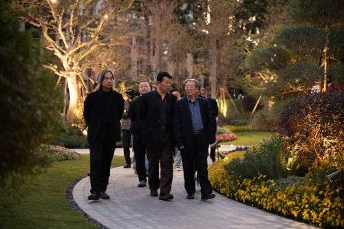 在未来生活艺术研究院院长、香江1号艺术总顾问、香江书画院院长翟美卿的陪同下,艺术家们依次参观了香江1号的艺术展览、“未来之眼”雕塑、整体空间规划、名车博物馆以及莫奈花园等代表性场景。从室内陈设到户外景观,从经典收藏到自然园林,项目通过有机整合的艺术布局,构建出一幅连贯而流动的审美画卷,让艺术脱离单一的视觉范畴,融入行走、感知与体验的全过程。
