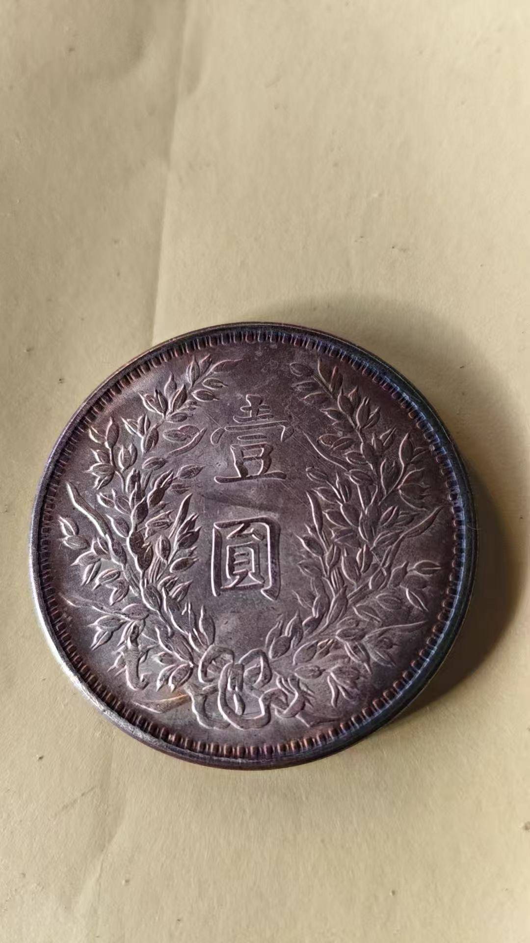 银币背面的设计则在传承中暗藏细节变化。中央的“壹圆”二字字体硕大,笔画饱满,与中央版的纤细风格形成鲜明对比;环绕的嘉禾纹饰更是甘肃版的特色所在,麦穗枝蔓更为粗壮,颗粒饱满度更高,纹饰的浮雕感极强,光影下层次分明,仿佛能感受到西北沃土中嘉禾的蓬勃生机。值得注意的是,甘肃版袁大头的嘉禾纹饰细节处理更为质朴,少了中央版的精细雕琢,却多了一份西北民间工艺的自然与灵动,成为其独特的艺术标识。银币的边齿为标准的橄榄齿,齿距均匀、深浅一致,虽因当时甘肃造币设备的限制,边齿打磨不及中央版规整,却也形成了独有的“陇式边齿”特征,成为鉴别甘肃版袁大头的重要依据。