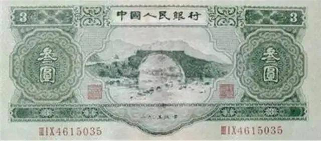 从这个角度看,3就是一个非重要数,因此3元的面额没有被采纳。此外,按照概率学的原理,1到9这几个数字中,3的出现概率不到18%,而1、2、5的出现概率则达到90%以上。所以,3作为货币面额不合适,它不仅使用不便,还会导致货币面额的结构不平衡,增加制造和流通的成本。 有人可能会问,为什么不把1到10的所有数字都作为面额呢?实际上,增加面额会导致钱币的制造和流通成本大幅度上升,货币面额越少,管理和流通就越方便。所以,银行不会把所有数字都作为面额。 03、苏三币 当然,在人民币的历史上,我们曾经发行过一张3元的人民币,它就是苏三币。 1955年3月1日,中国银行发行了第二套人民币,其中就有3元人民币。这也是我国唯一一张面额为3元的人民币纸币。这张3元人民币被称为苏三币。