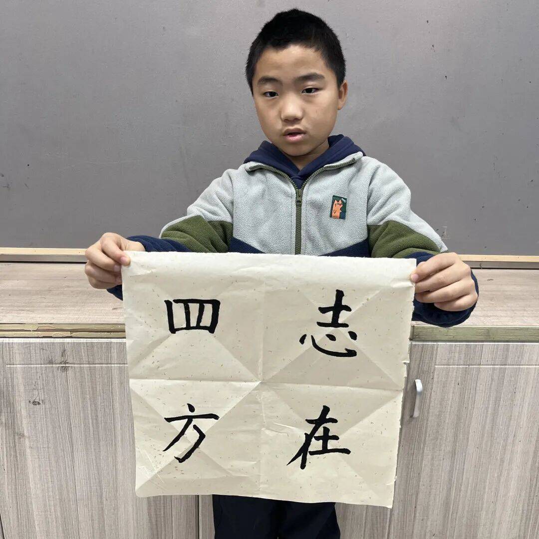 课程尾声,孩子们小心翼翼地将作品铺平、吹干,再双手捧起,眼眸里闪烁着藏不住的自豪。指尖残留的墨香与心中的成就感交织,成为这场书法公益课堂最珍贵的馈赠。在这里,电子产品暂时退场,笔尖在宣纸上缓缓游走,墨香萦绕间,孩子们不仅提升了书写技巧,更从吉言中汲取了向上向善的力量,收获了情操的熏陶与精神的滋养。 这些承载着墨香与祈愿的斗方作品,如同一粒粒文化的种子,悄然在青少年心中生根发芽。它们或许不会立刻长成参天大树,但终将在岁月的滋养下,为孩子们的人生添一抹古朴而厚重的底色——那是中华文化独有的气韵,是“见字如面”的温度,更是“以文化人”的力量。