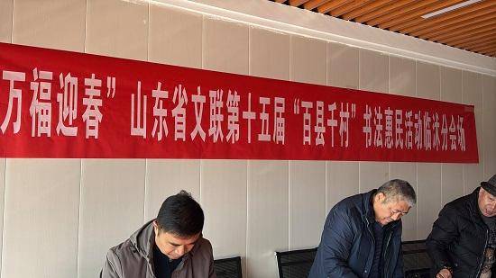 鲁网1月19日讯 近日,“万福迎春”山东省文联第十五届“百县千村”书法惠民活动临沭分会场走进临沭县玉山镇李庄村。书法爱好者现场挥毫泼墨,将春联、“福”字送到村民手中。村民们围聚案前挑选心仪作品,墨迹未干的春联让年味愈发浓厚。此次活动既传承了传统文化,更让村民感受到党和政府的暖心关怀。(通讯员 吴昊泽)