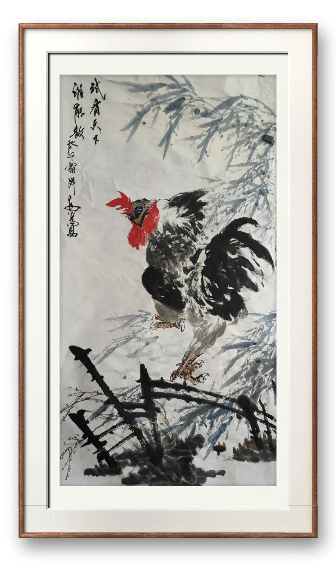 马满昌以画鸡为长,笔下雄鸡千姿百态、神韵具足。他以焦墨勾喙、浓墨点羽、淡墨染绒,寥寥数笔便现雄鸡昂首之态。其创作不耽工细,以笔力传精神,笔下之鸡兼具烟火温润与文人傲骨,将这份神韵推至极致,成为各界推崇的上品。