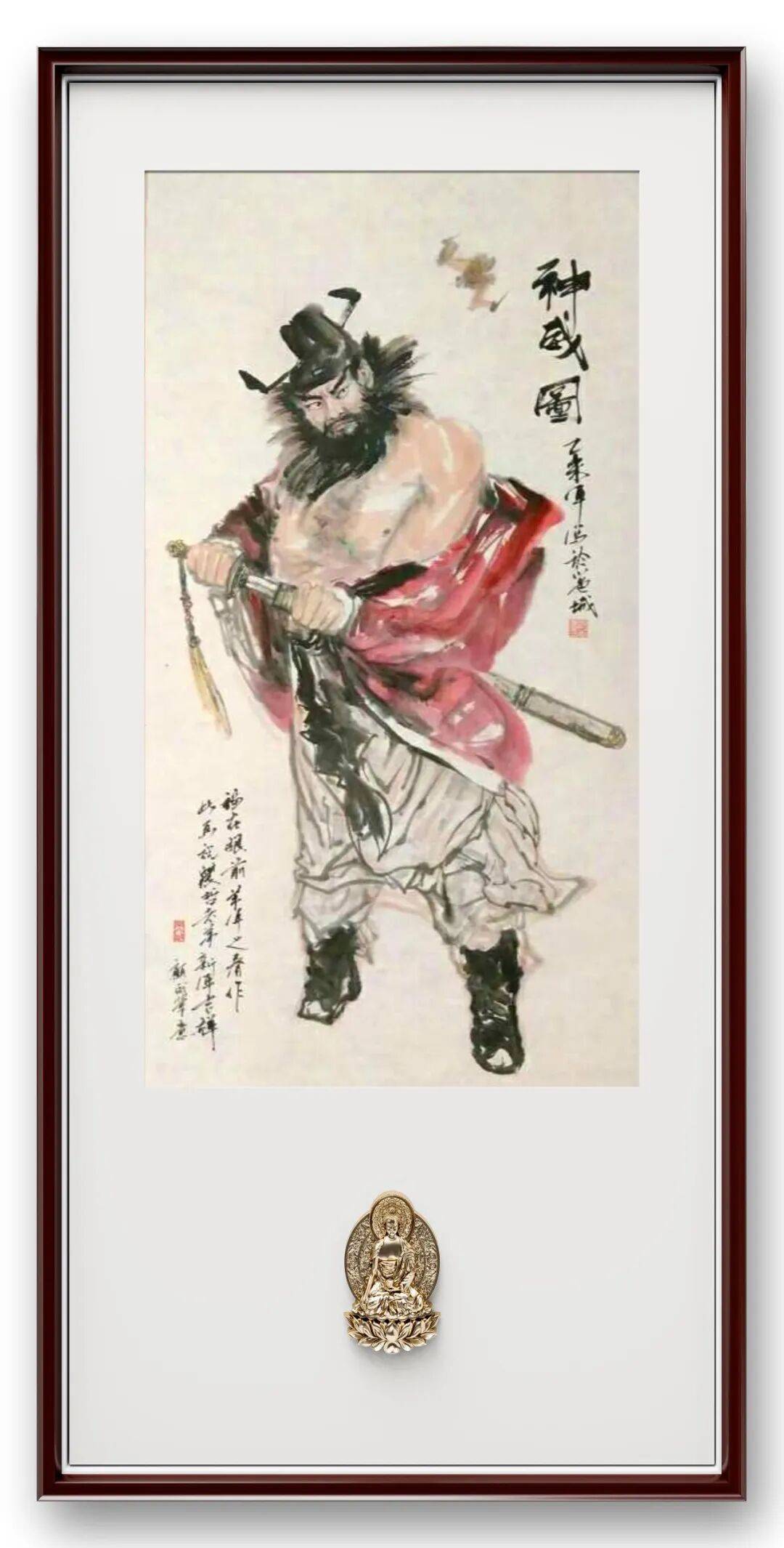 顾威亦善绘钟馗,笔下的驱邪判官跳出传统范式的刚猛威厉,多了几分亲和与人文温度。他以凝练笔墨勾勒钟馗虬髯怒目的威仪,更以细腻笔触刻画其眉宇间的正气凛然;衣袂皴擦间融入桂地山水的苍劲质感,袍角飘带又暗含写意花鸟的灵动韵致。其钟馗图,不耽于 “镇宅驱邪” 的世俗寓意,更着意于彰显匡扶正义、护佑苍生的精神内核,笔墨间既有传统人物画的法度,又有当代审美下的创新表达,观之令人心生敬畏,亦觉亲切可感。