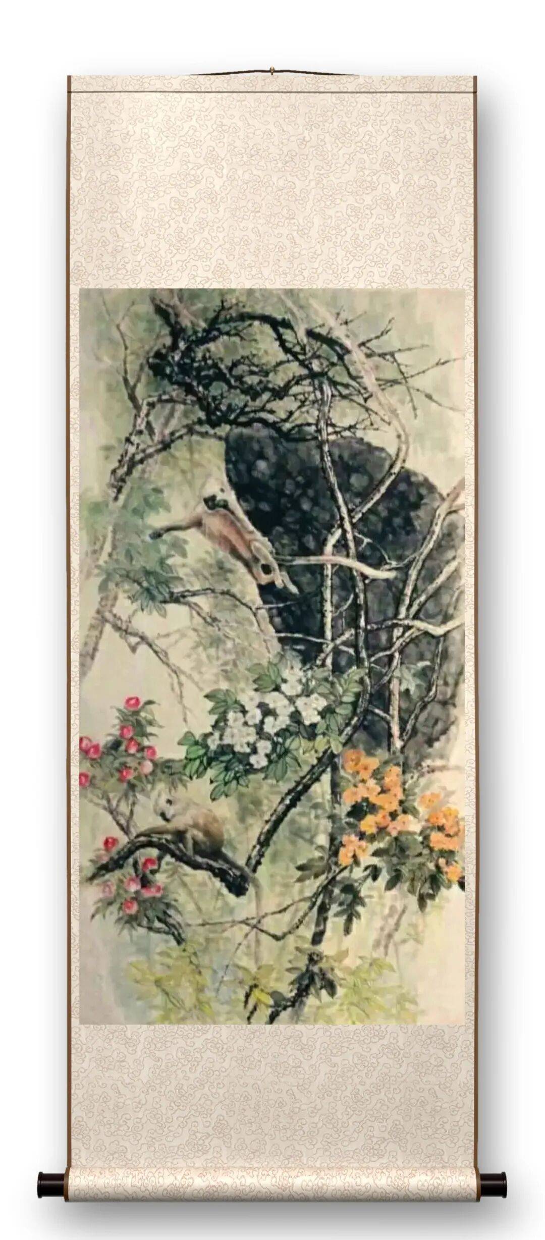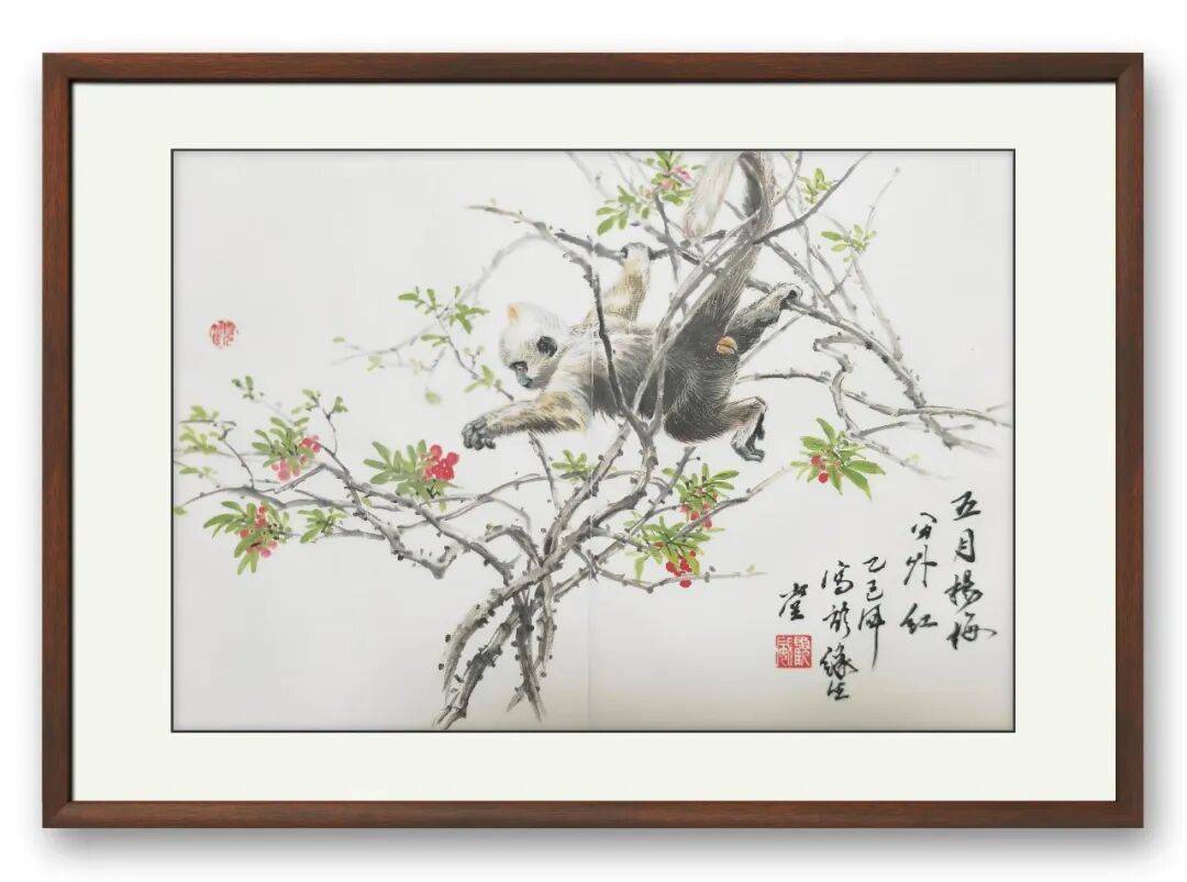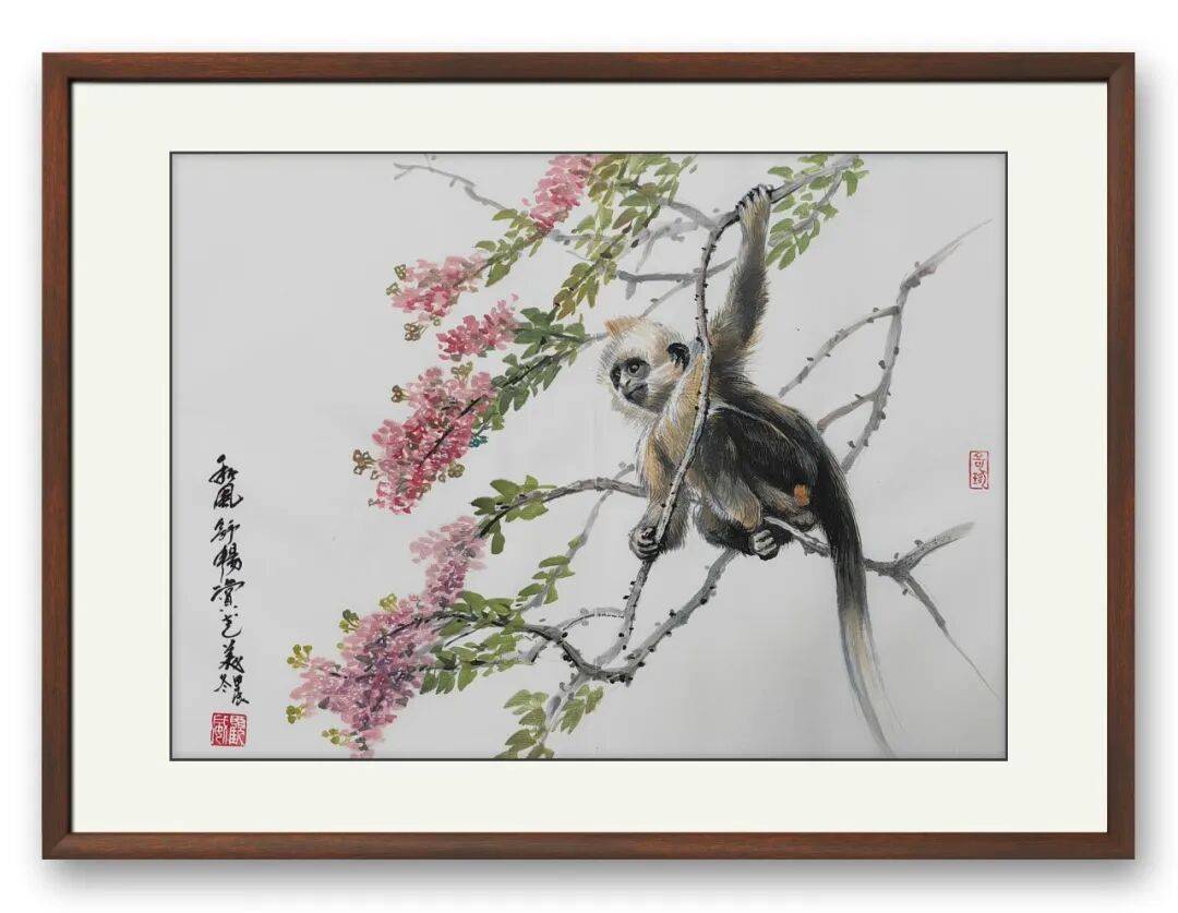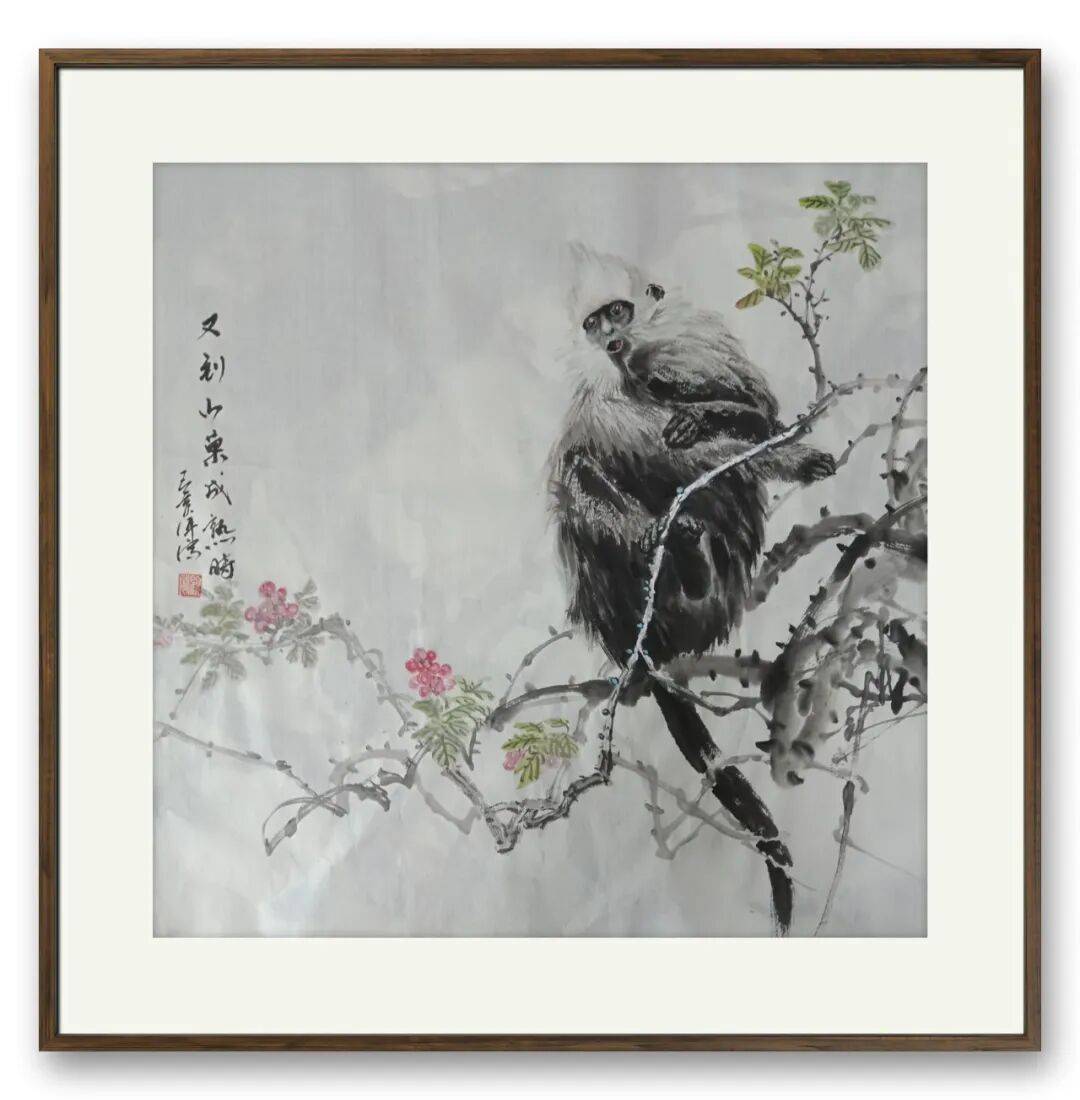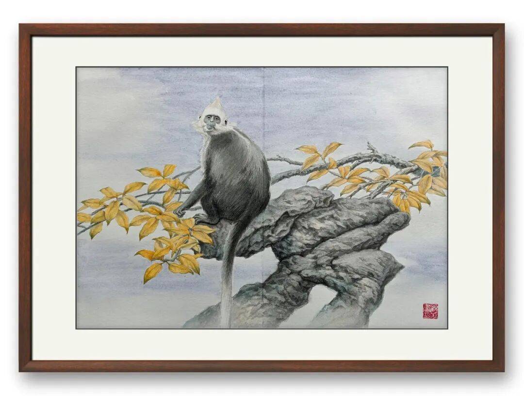 中国画有 “画鬼容易画人难” 之说,就是越熟悉的就越难画。而猴子在走兽一科中,是最难表现的动物之一。与猴有关的成语有尖嘴猴腮、猴年马月、沐猴而冠等,可见猴与人的关系多么密切。历代画猴的名家大师不是很多,因此可供参考学习的资料并不丰富,尤其是关于广西特有的白头叶猴的画作更是少见。不过也正因为如此,留给他创作的空间反而更大,束缚也更小。