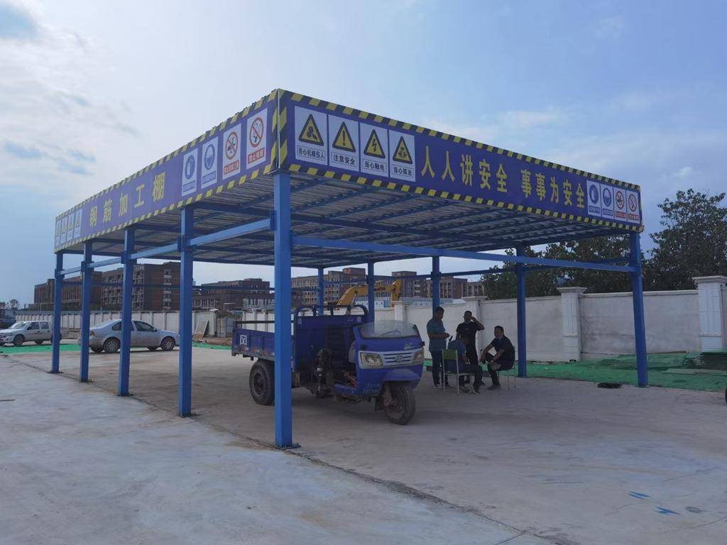 钢筋加工棚:采用国标镀锌钢材,具备防腐防锈、承重性强的特性,适用于各种恶劣户外环境。模块化拼装设计,安装拆卸便捷,可重复周转使用,显著降低综合使用成本。产品严格遵循住建部施工安全规范设计生产,配备完整检测报告与验收资料,助力项目顺利通过安监检查。