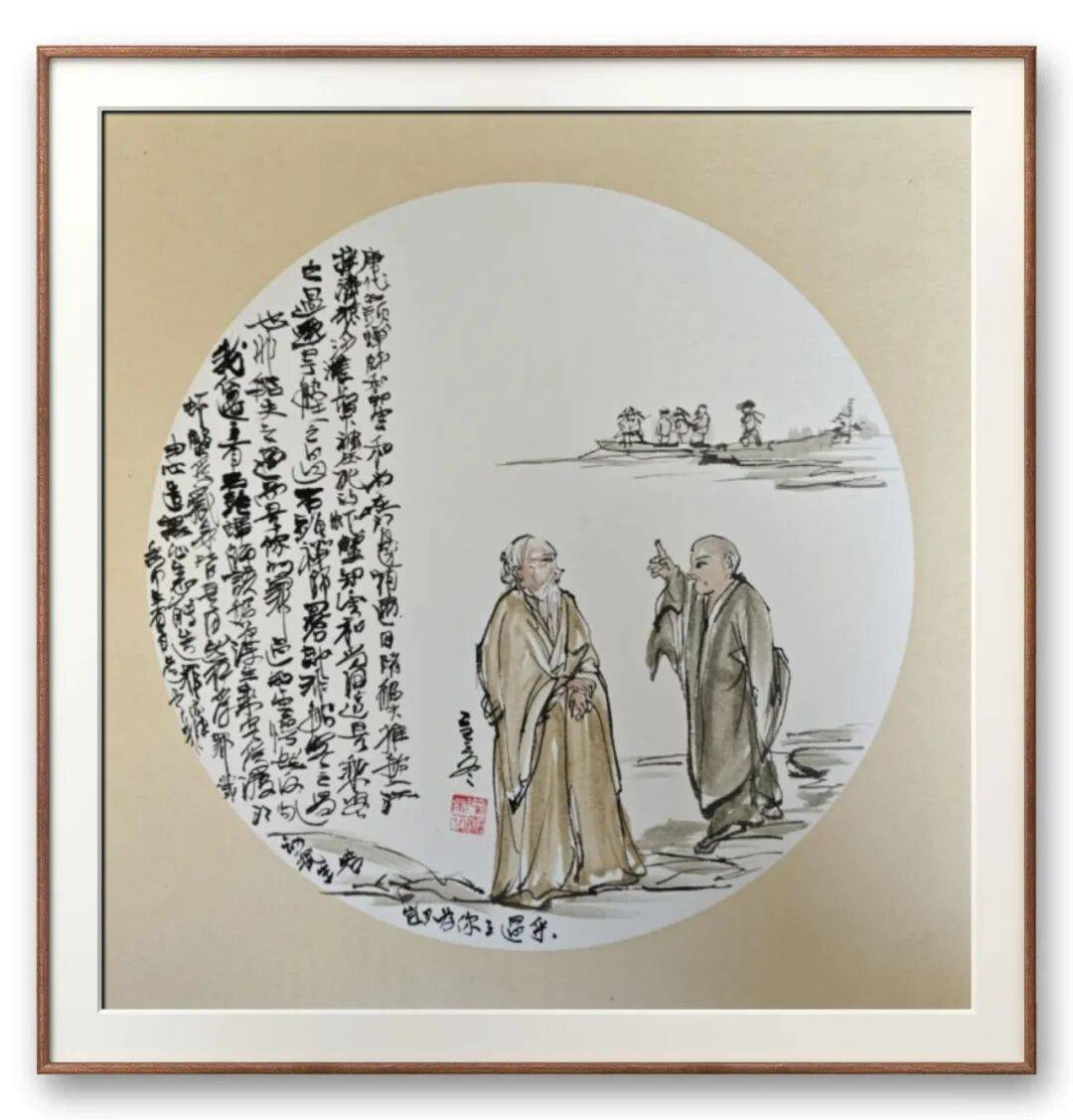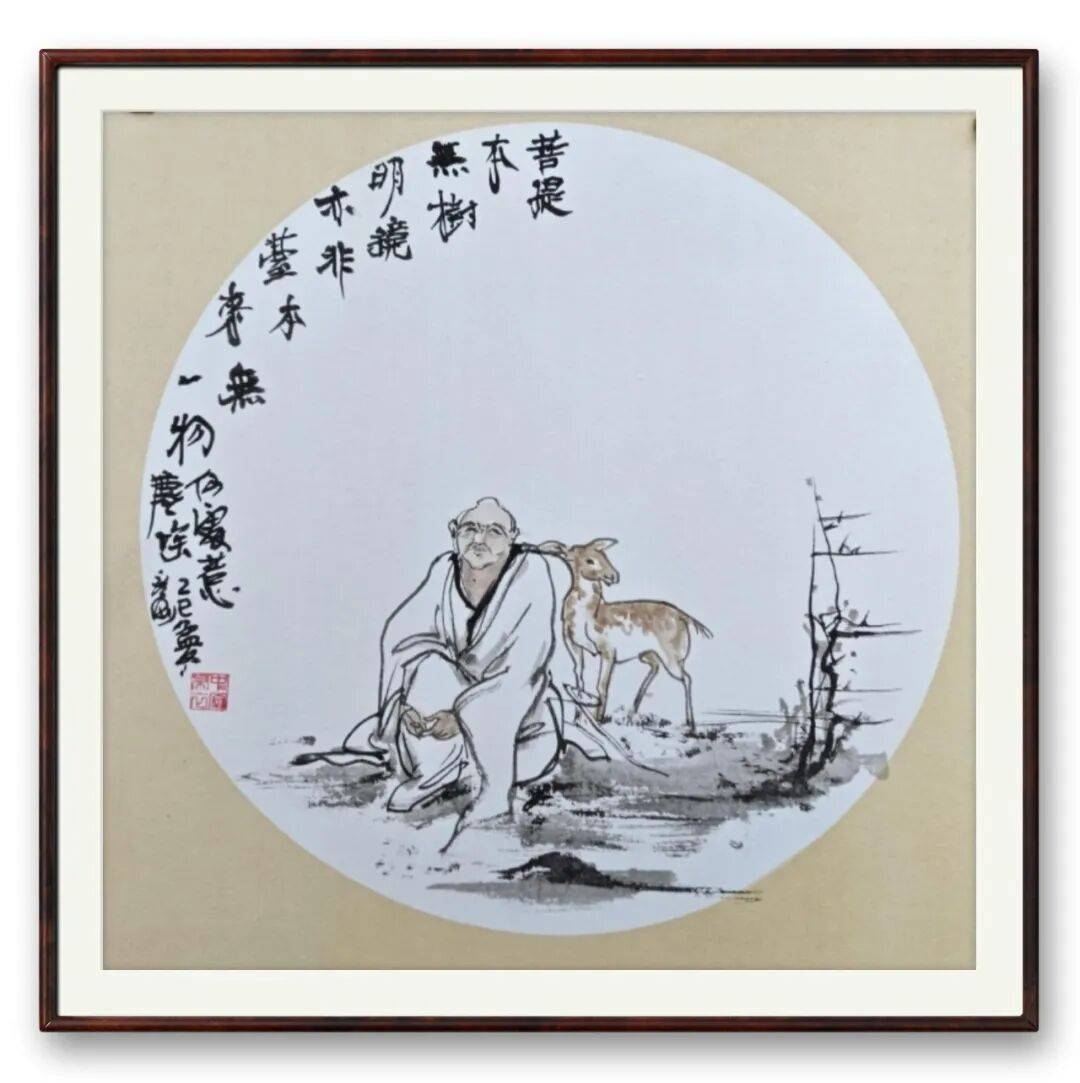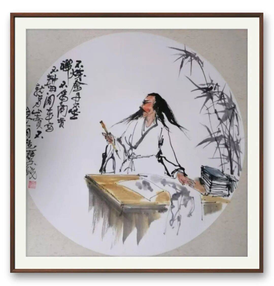 笔墨为骨,情怀为魂,魏彦刚的人物画始终坚守着传统书画的审美内核。他的线条不趋时风,不追怪诞,恪守“骨法用笔”的古训,每一笔都有起承转合,力透纸背,尽显笔墨的韧性与力量。墨法上,善于在干湿浓淡的变化中营造层次感,人物的肌肤、衣料、背景的山水草木,皆以不同墨法区分,既保证了画面的丰富性,又不失整体的和谐。难能可贵的是,他的笔墨始终为人物精神服务,不为技法而技法,让线条与墨色成为人物心性、文化内涵的载体,这正是传统人物画“以形写神”的精髓所在。