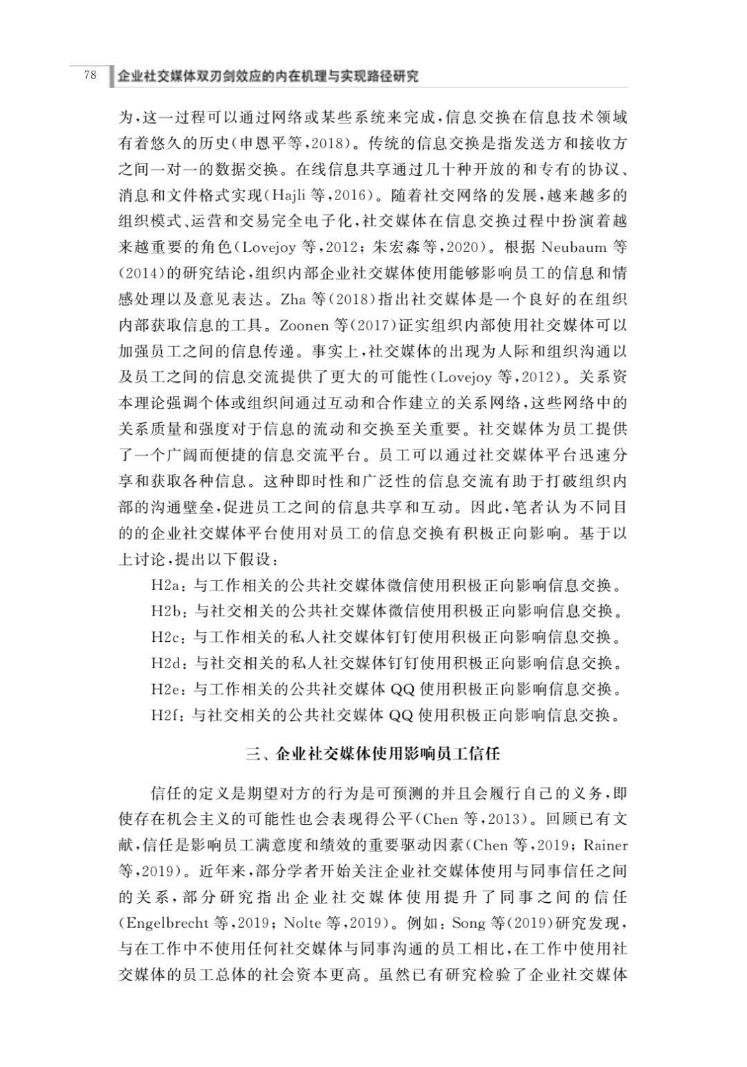 第五章 企业社交媒体使用对员工关系资本的影响研究